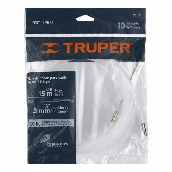 La Guía Nylon Cable de 15 metros de Truper, modelo GNY-15, código 17756, es una herramienta esencial para profesionales en la instalación de sistemas eléctricos.
