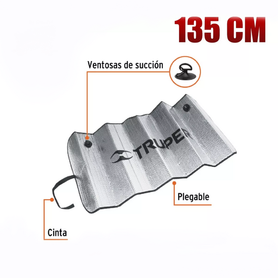 Parasol plegable de 135 cm para auto, truper PSOL-135
