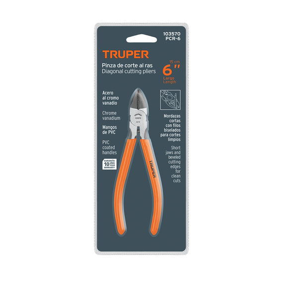 Pinza de corte al ras 6" mango de pvc, truper PCR-6