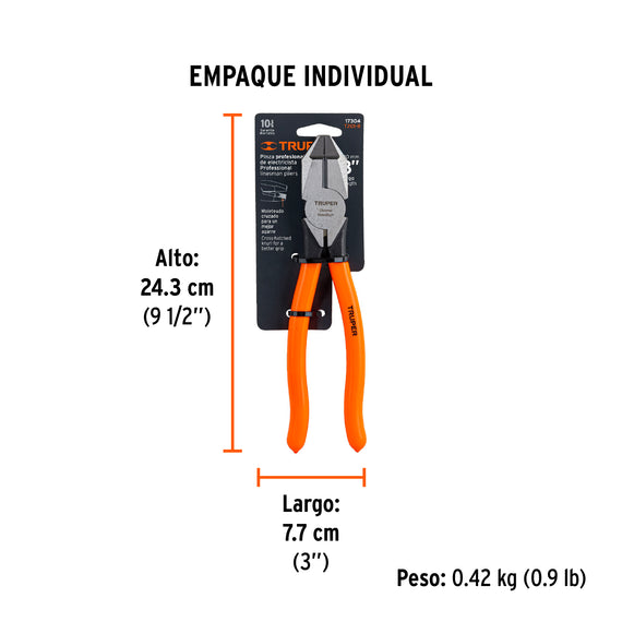Pinza para electricista 8" uso rudo, mango pvc, TRUPER T201-8
