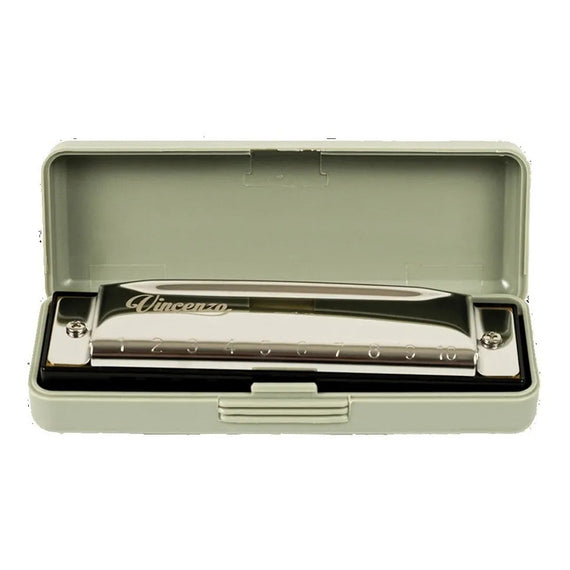 Harmónica Vincenzo Con 10 Orificios, Tono La Color Naranja, Con Estuche