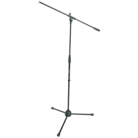 Soporte de micrófono con boom, base de nylon trípode. Disponible con acabado en negro mate o cromado.